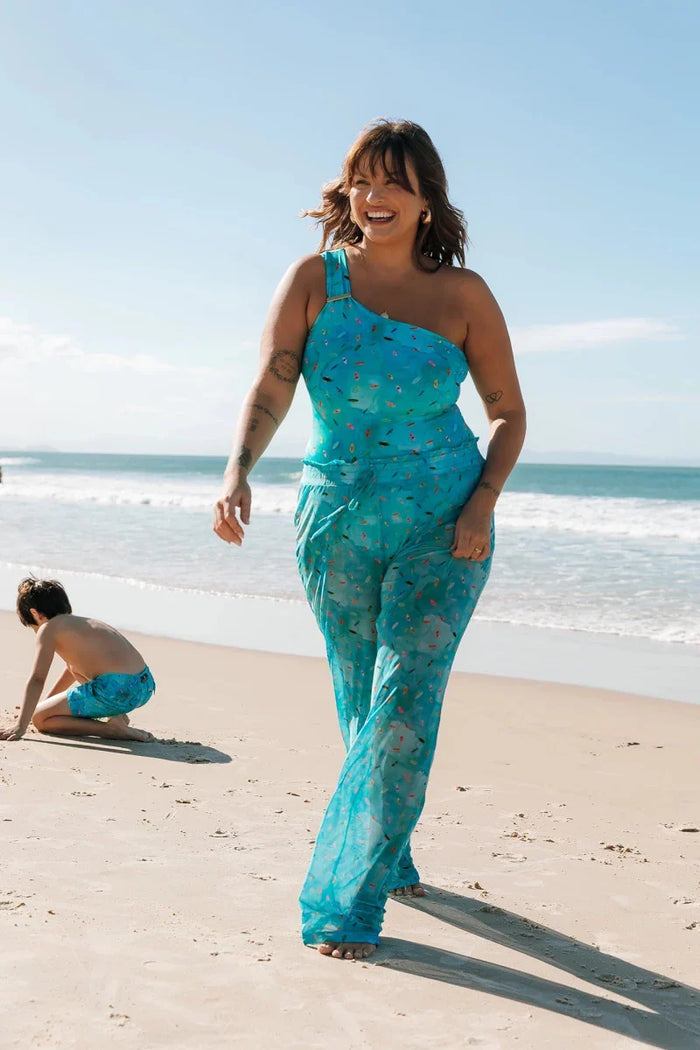 A Calça Daniella é uma saída de praia com cintura alta, cós de elástico, amarração na frente, e comprimento longo. Feita de Tule, um tecido super leve, não amassa, perfeito...