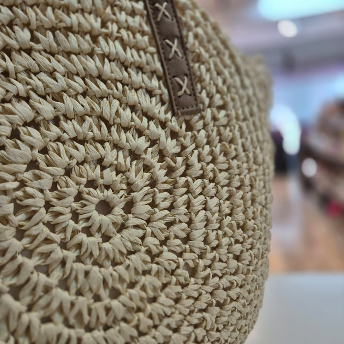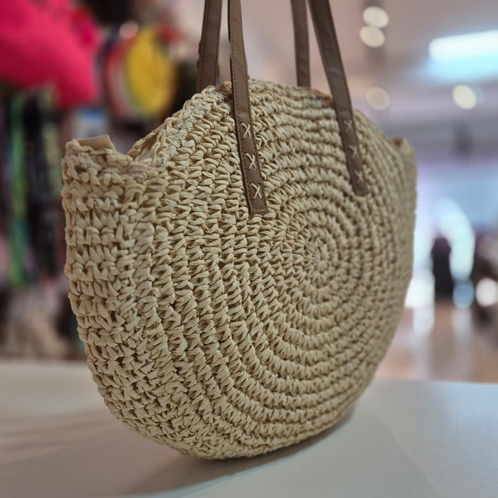 A bolsa de praia circular em palha é uma opção prática e estilosa para quem busca um acessório leve para aproveitar momentos de lazer. Com formato redondo e visual natural, ela combina perfeitamente com looks de praia, piscina e passeios em dias quentes.